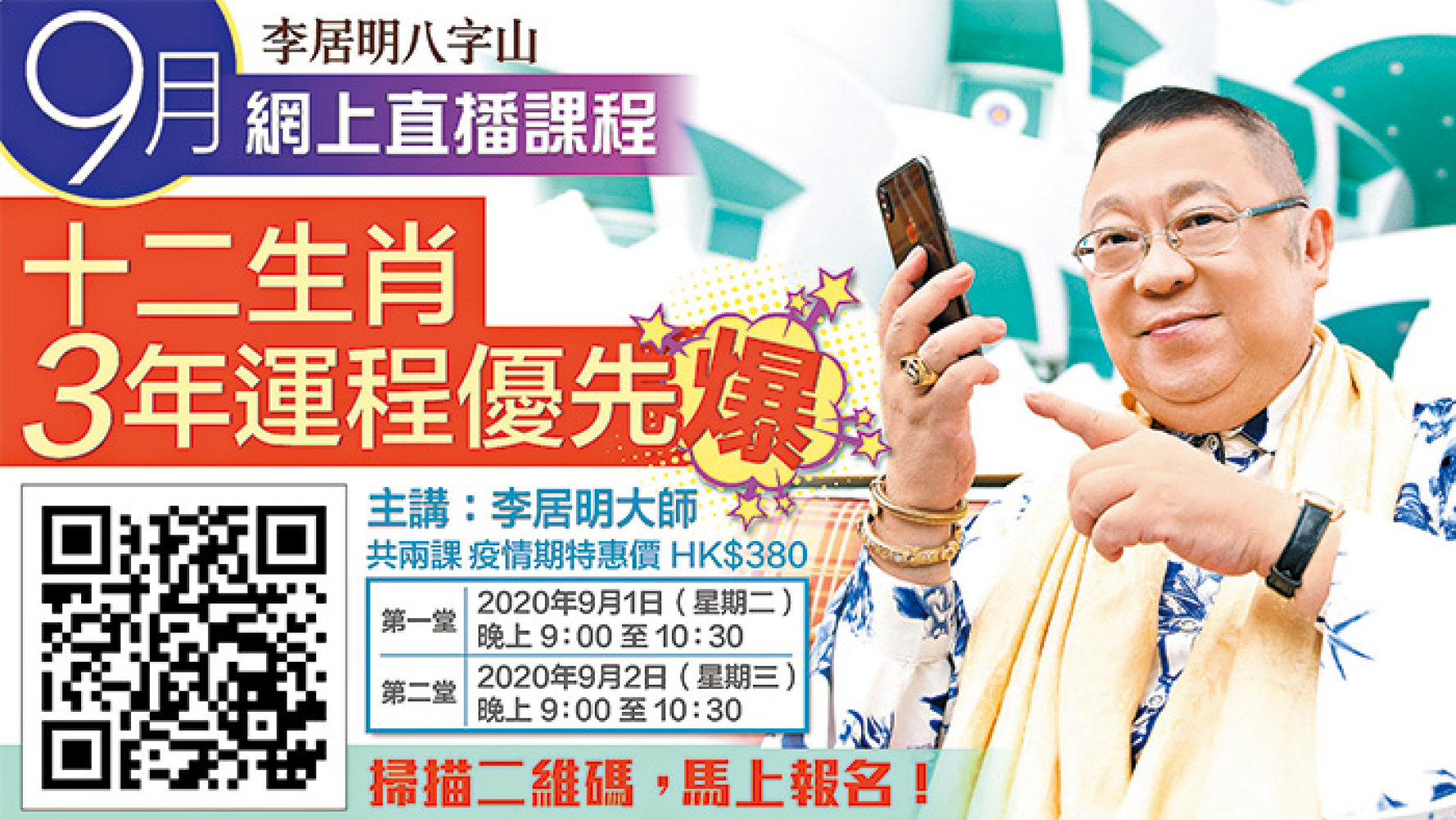 美國總統大選在十一月三日,若選舉不能延期,特朗普失利,他一定懂得「上訴」,當重點票數之後,一定已進入「亥」月!點票日及上訴機會,都令特朗普可扭轉乾坤。特之性格是「易請難送」,非拜登所及也。我的首個網課將在西曆九月一日和二日開班,首兩課教你看自己及家人未來三年的大運,以三十六位明星名人作例證,影圈人士紛紛報名,兩課疫情特惠價港幣三百八十元,前所未有的超值和優惠,又爆料極多,機會難得,不要錯過,快點來報名喇! www.likuiming.com