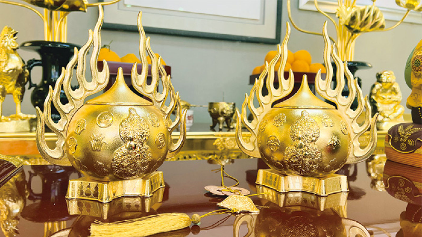 男主人財箱也是放西北位,但由於五黃正關煞在西北位,男性催財較多凶險。只要在西北方財箱位同時放化洩五黃煞的風水物「化瘟大神鈴」便可。